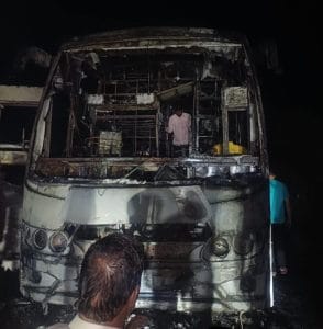 बस में आगे की पंक्ति में बैठे कदवाया थाने में पदस्थ प्रधान आरक्षक अरविंद रघुवंशी ने सबसे पहले बस के बोनट से धुआं उठते देखा और तुरंत ड्राइवर को इसकी सूचना दी। ड्राइवर ने बस को साइड में रोका, तभी आग फैलने लगी। स्थिति की गंभीरता को समझते हुए प्रधान आरक्षक रघुवंशी और क्लीनर छोटा केवट बस के गेट से बाहर निकले, परंतु उसी दौरान गेट के आसपास आग फैल गई जिससे यात्रियों के लिए बाहर निकलना कठिन हो गया।