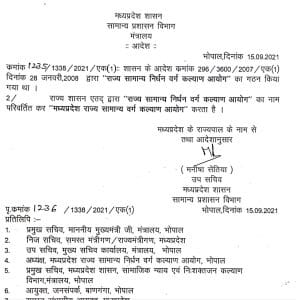 सामान्य प्रशासन विभाग की उप सचिव मनीषा सेंतिया के हस्ताक्षर से जारी आदेश में कहा गया है कि “राज्य सामान्य निर्धन वर्ग आयोग” का नाम बदलकर राज्य शासन ने अब “मध्यप्रदेश राज्य सामान्य वर्ग कल्याण आयोग” कर दिया गया है।