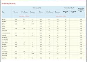 बीते 24 घंटे में जिन जिलों में बारिश रिकॉर्ड की गई है उसमें सीधी में सबसे ज्यादा 53 मिलीमीटर जबकि खजुराहो, सतना, रीवा, उमरिया, दमोह, छिंदवाड़ा, ग्वालियर सहित सागर, मंडला, भोपाल में भी बूंदाबादी जारी रही थी।