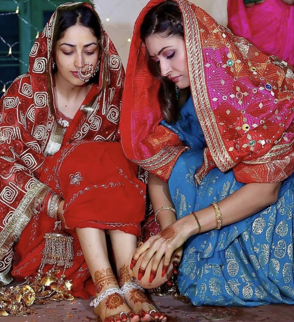 उन्होने अपनी शादी के दिन लाल रंग की साड़ी पहन थी जिसमें चांदी के तारों से हैंडवर्क किया गया था। साड़ी की बॉर्डर पर खूबसूरत पट्टी थी और इसके साथ उन्होने पारंपरिक सोने के गहने पहने थे। आदित्य धर ने इस मौके पर एक शानदार शेरवानी पहनी थी।