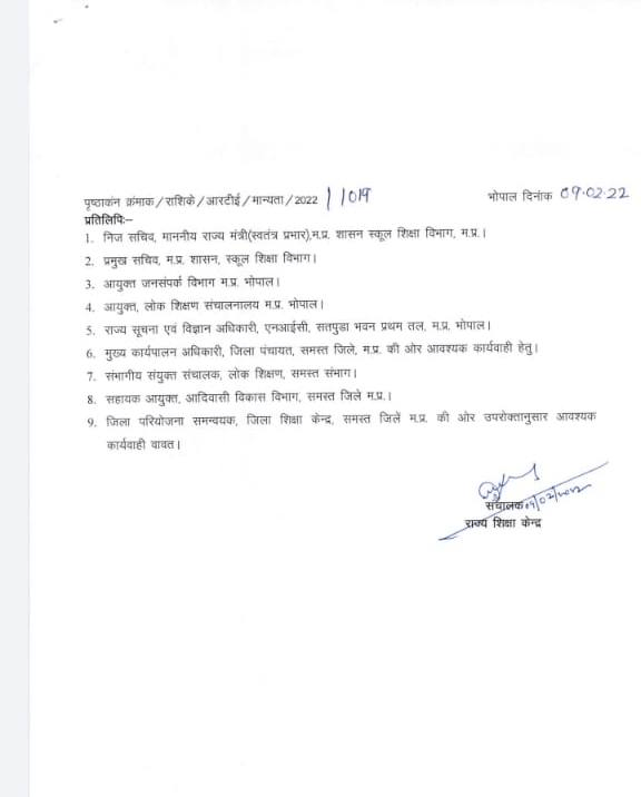 संचालक राज्य शिक्षा केन्द्र ने आवेदन करने में सुविधा की दृष्टि से समय सारिणी के साथ ही विस्तृत निर्देश भी पत्र में दिए हैं। पत्र स्कूल शिक्षा विभाग के वेबपोर्टल http://www.educationportal.mp.gov.in/ http://www.educationportal.mp.gov.in/Portal/Public/View_Circular.aspx?id=85431पर भी देखा जा सकता है।