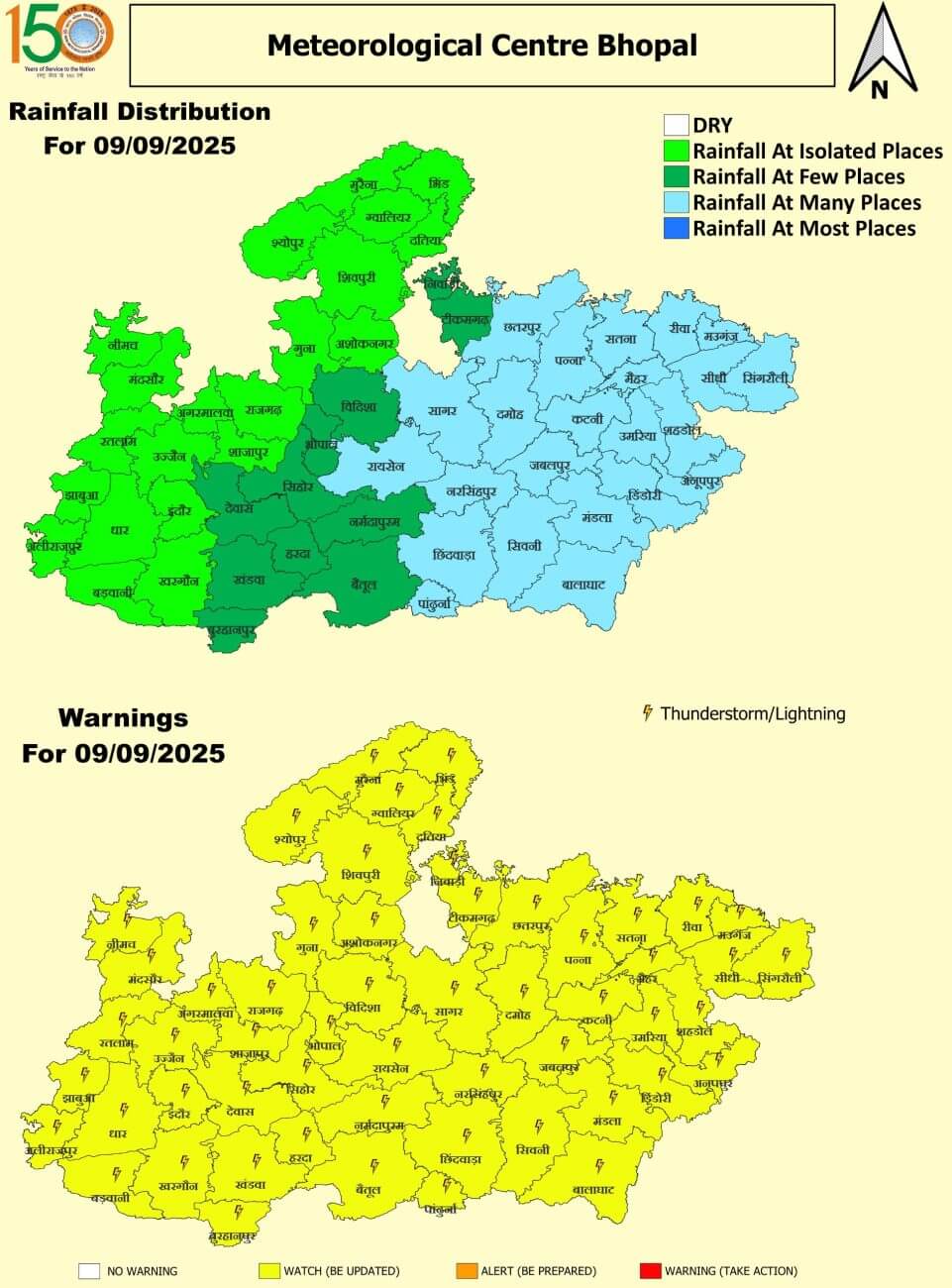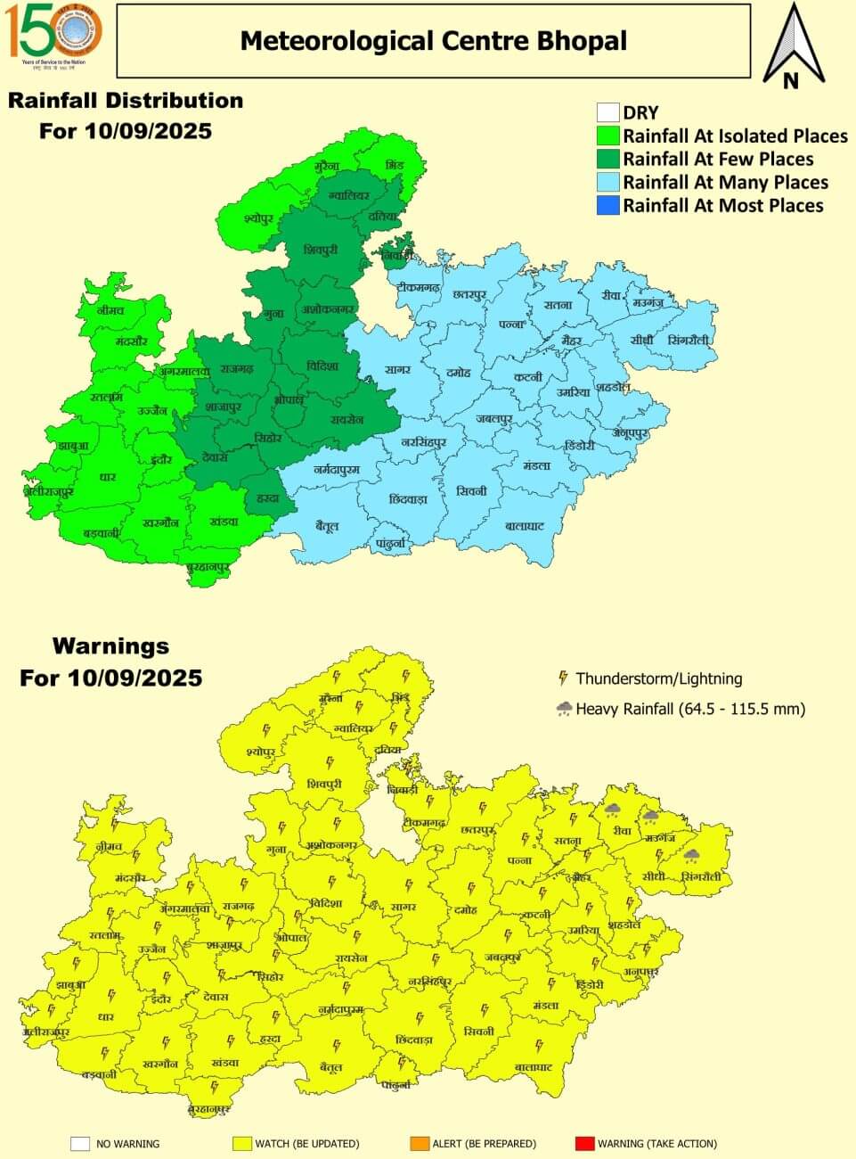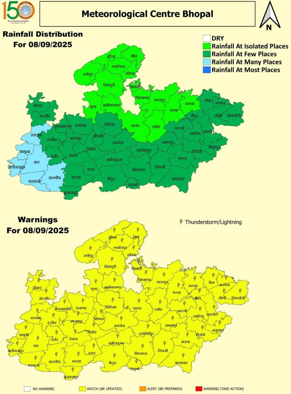 - मंडला, आगर मालवा, राजगढ़ और खंडवा में बिजली व मध्यम बारिश।