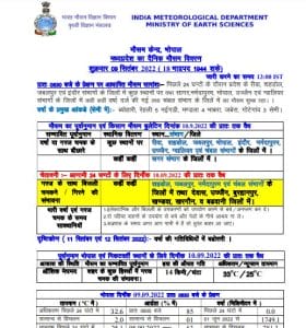 भोपाल, डेस्क रिपोर्ट। बंगाल की खाड़ी में कम दवाब का क्षेत्र विकसित होने के कारण हवा में नमी आना शुरू हो गई है। आज 9 सितंबर के बाद बारिश की गतिविधियों में तेजी आएगी और फिर झमाझम बारिश का दौर शुरू हो जाएगा।एमपी मौसम विभाग (MP Weather Department) ने आज शुक्रवार 9 सितंबर 2022 को सभी संभागों में गरज चमक के साथ बारिश की चेतावनी जारी की है। वही 23 जिलों में बिजली गिरने और चमकने की चेतावनी जारी की है।मध्यप्रदेश में 1 जून से अब तक करीब 40 इंच बारिश हो चुकी है। सामान्य रूप से अब तक 36 इंच बारिश होना चाहिए। यह सामान्य से 17% ज्यादा है।