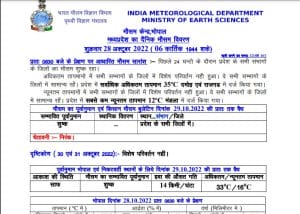 एमपी मौसम विभाग (MP Weather Update) के मुताबिक, बंगाल की खाड़ी में चक्रवाती हवाओं का घेरा 4.5 किलोमीटर ऊंचाई तक बना हुआ है और 29 अक्टूबर से नॉर्थ ईस्ट मानसून शुरू हो रहा है, इसके असर से आंध्रप्रदेश, तमिलनाडु, कर्नाटक व केरल में हल्की से मध्यम बारिश होने की चेतावनी है। लेकिन मध्य प्रदेश में बारिश के आसार नहीं है।वही नवंबर में नॉर्थ ईस्ट की बारिश के कारण नवंबर में प्रदेश में कड़ाके की ठंड पड़ना शुरू होगी।