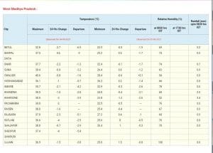 वही मौसम वैज्ञानिकों ने मध्यप्रदेश में जून के तीसरे सप्ताह में मानसून की दस्तक की संभावना जताई है। मौसम वैज्ञानिकों की माने तो ग्वालियर-चंबल सहित कई संभागों में 20 से 25 जून के बीच मानसून की एंट्री होगी। हालांकि इससे पहले मध्य प्रदेश में मानसून गतिविधियां जारी रहेगी।
