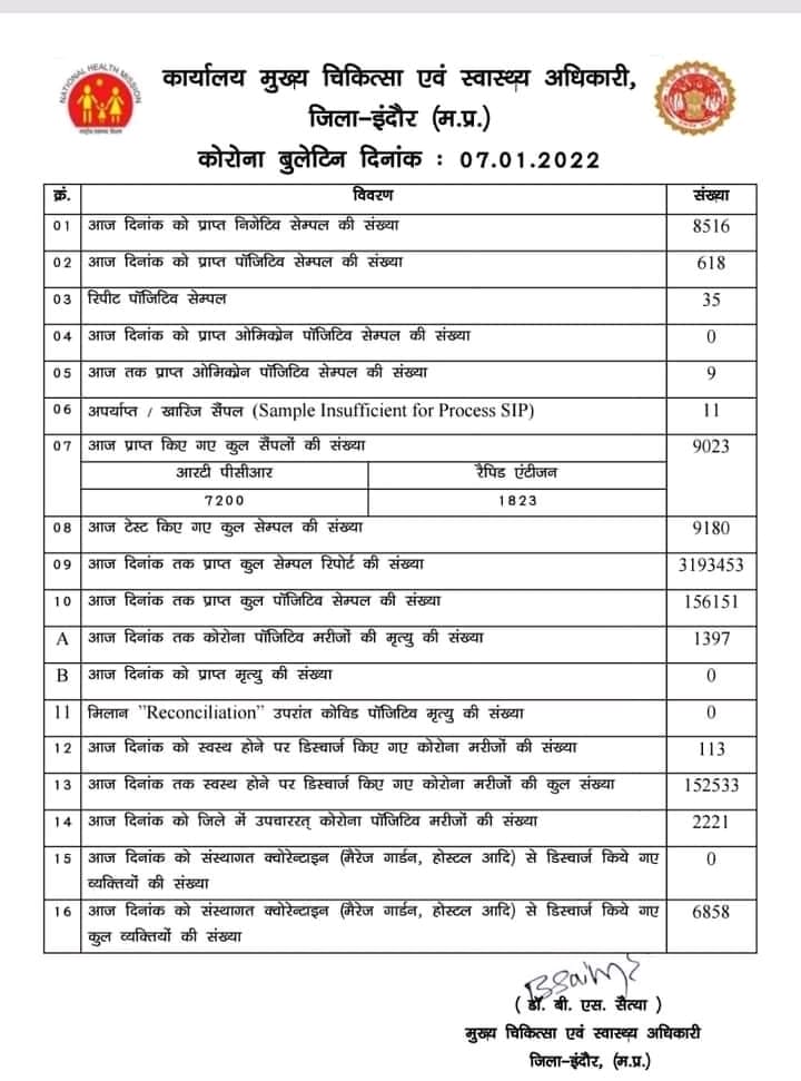 Indore Corona : दरअसल इंदौर में बीते 24 घंटे में 618 मरीजों की पुष्टि हुई है। वही दोबारा संक्रमित हुए मरीजों की संख्या 35 है। जिले में अब तक केवल 9 ओमाइक्रोन पॉजिटिव सैंपल्स की पुष्टि हुई है। इसके लिए 9180 सैंपल ओं की जांच की गई थी। इंदौर में एक्टिव मरीजों की संख्या बढ़कर 2221 पहुंच गई है।