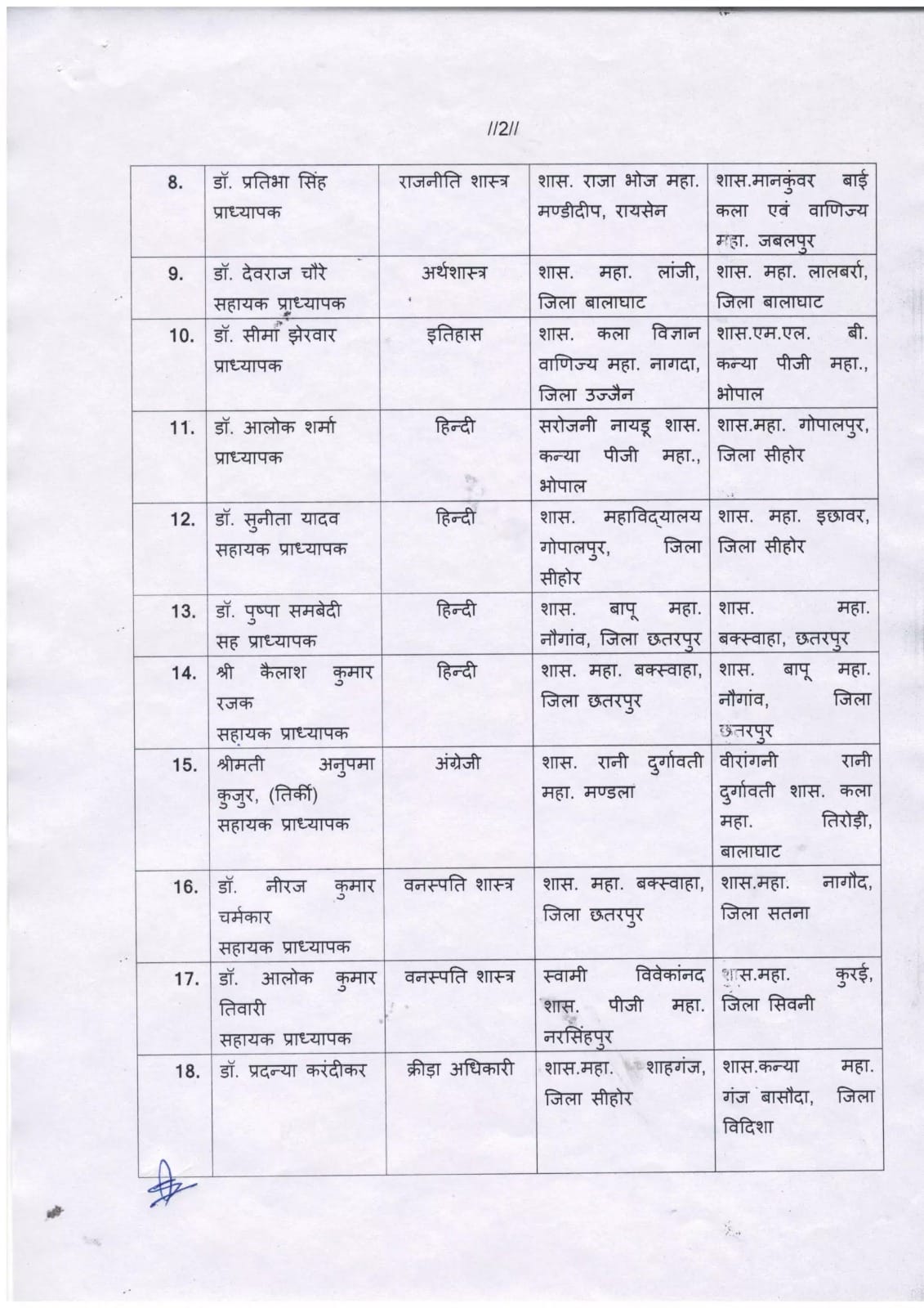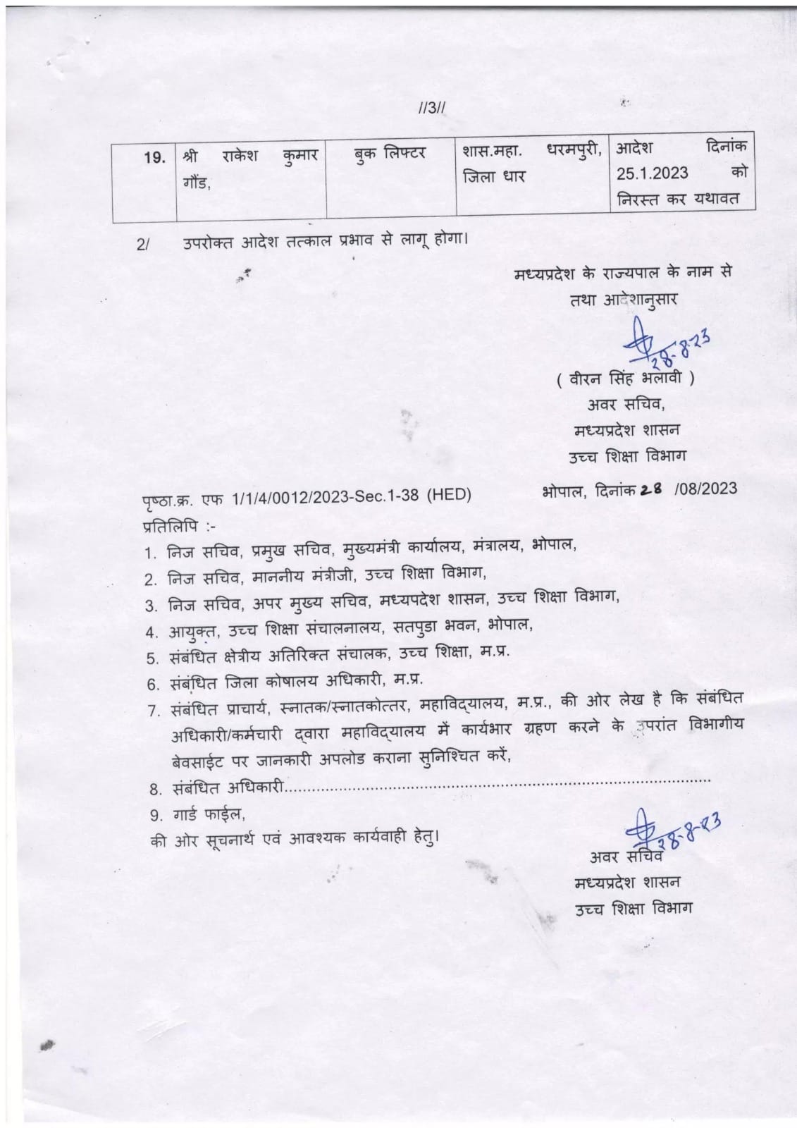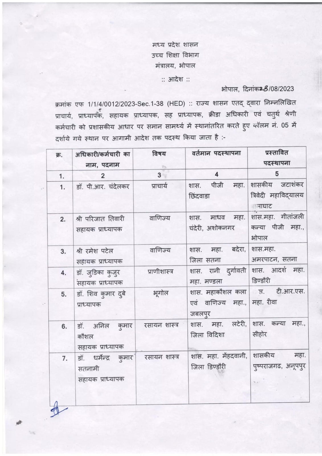 MP Transfer : उच्च शिक्षा विभाग में तबादले, राज्य शासन ने जारी किये नवीन पदस्थापना आदेश, देखें लिस्ट
