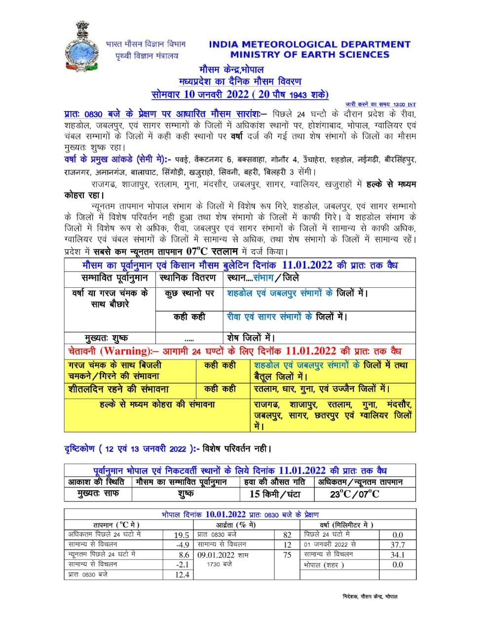 MP Weather Update Today 10 January 2022