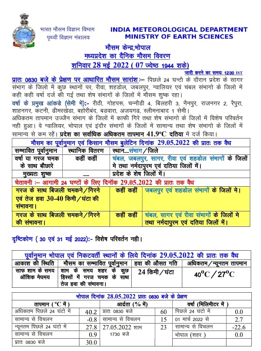 MP Weather Update Today 28 May 2022