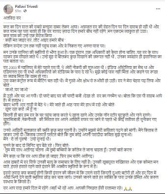 पल्लवी त्रिवेदी ने अपने फेसबुक वॉल (Facebook Wall) पर लिखा है कि कल का दिन साल की सबसे मनहूस खबर लेकर आया। अफ़ज़ल सर की सेहत दिन पर दिन खराब हो रही थी और कल शाम यह पता चलते ही कि सर शायद ज़्यादा दिन हमारे बीच नहीं रहेंगे, मन एकदम व्याकुल हो उठा।कल शाम को उन्हें एक मैसेज किया -‘कहीं मत जाइए सर ,लौट आइए हमारे बीच ‘ लेकिन सन्देश उन तक नहीं पहुंच सका और वे निकल गए अनन्त यात्रा पर।मन उनके सानिध्य की स्मृतियों से भीगा हुआ है। एक इंसान ,एक अधिकारी को कैसा होना चाहिए ,यह सर के साथ रहकर हम सीखते जाते थे । उन्हें मुंह से बोलकर कुछ सिखाने की ज़रूरत नहीं थी , उनका व्यवहार ही इंसानियत का पता बताता था।
