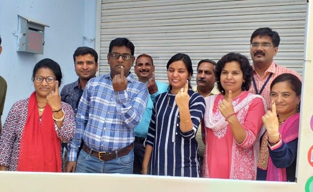 भोपाल| देश में सातवें और मध्य प्रदेश में चौथे और अंतिम चरण के लोकसभा चुनाव के लिए आज मतदान हो रहा| लोकतंत्र के इस महापर्व को सफल बनाने हर उम्र के लोग अपने सभी जरूरी काम छोड़कर वोट देने पहुँच रहा है| आम से लेकर ख़ास तक पोलिंग बूथ पर नजर आ रहे हैं| इस दौरान कुछ ऐसी हस्तियां भी मतदान केंद्रों पर नजर आई जिनको लोग टीव��� पर ही देखते हैं| टेलीविजन के पॉपुलर शो ‘तारक मेहता का उल्टा चश्मा’ में कृष्णन अय्यर का किरदार निभाने वाले तनुज महाशब्दे ने गृहनगर देवास में अपने परिवार के साथ वोट डाला|