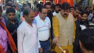 विभाजन विभीषिका दिवस के मौके पर गुरुवार को राजधानी भोपाल में माहौल पूरी तरह भगवामय हो गया। छोला दशहरा मैदान से छोला गणेश मंदिर तक जाग्रत हिंदू मंच के प्रदेश अध्यक्ष राजा भैया सेन के नेतृत्व में निकली भगवा ध्वज यात्रा ने हिंदुत्व और एकता का संदेश दिया। इस दौरान कार्यकर्ताओं ने पाकिस्तान का पुतला दहन कर विभाजन में शहीद हुए लोगों को श्रद्धांजलि दी।