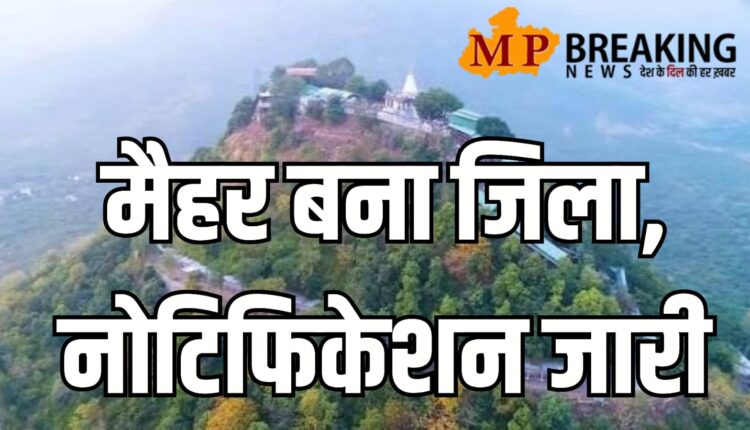 MP News : विधानसभा चुनाव से पहले मुख्यमंत्री शिवराज सिंह चौहान ने आज मंगलवार की सुबह माँ शारदा की नगरी मैहर को जिला बनाने की घोषणा की और इस घोषणा के कुछ घंटों बाद ही इसका गजट नोटिफिकेशन जारी हो गया, नोटिफिकेशन में सतना जिले से काटकर अलग मैहर जिला बनाने की पूरी जानकारी दी गई और एक महीने में दावे आपत्ति मांगी गई है, अब मैहर के जिला बन जाने से मध्य प्रदेश में जिलों की संख्या बढ़कर 55 हो गई है।