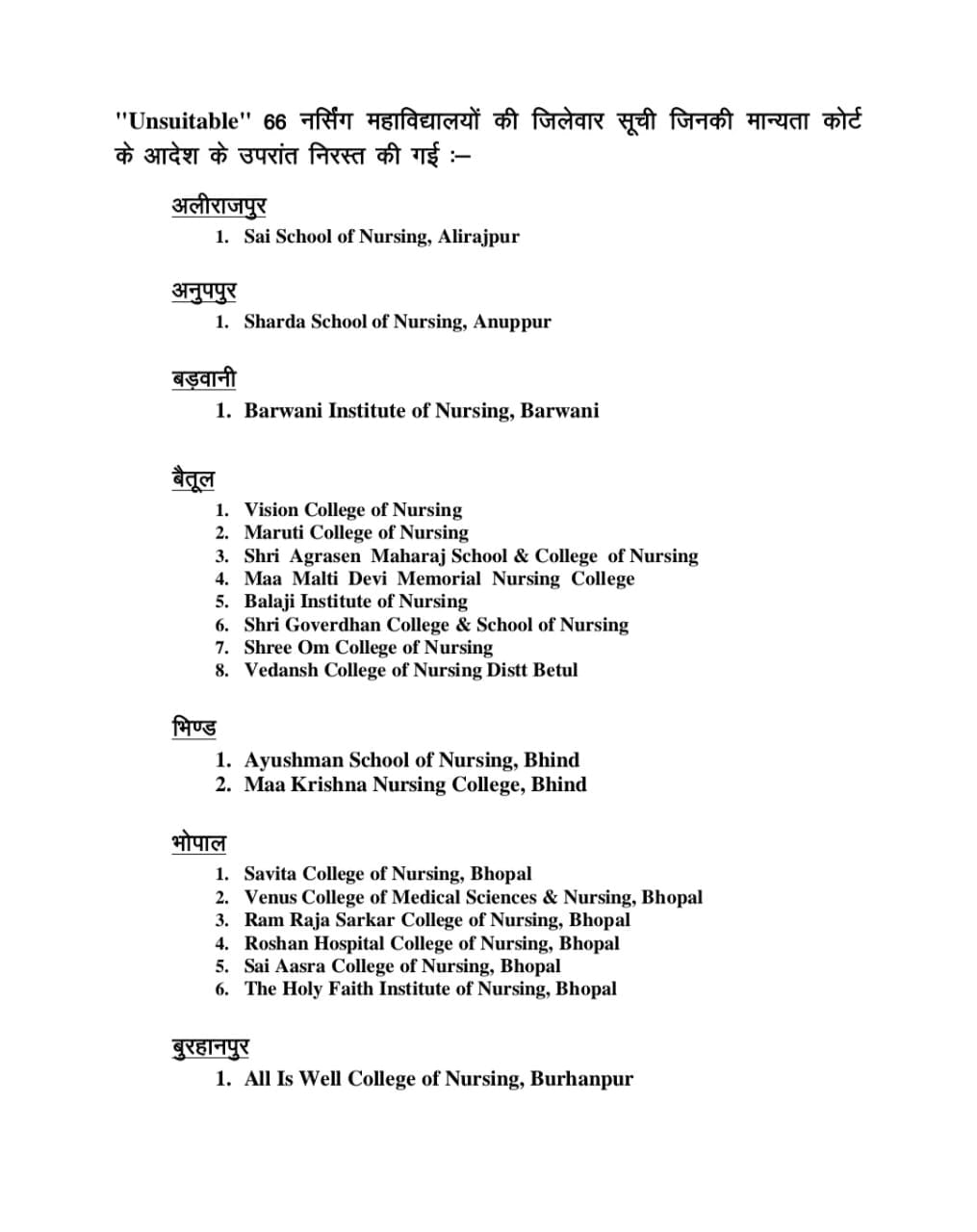 31 जिलों के 66 अनसूटेबल नर्सिग कॉलेजों की मान्यता निरस्त