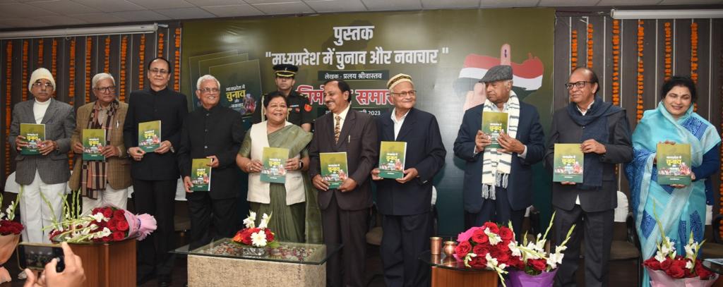 Pralay Srivastava’s book launch : छत्तीसगढ़ की महामहिम राज्यपाल अनुसुइया उइके ने शनिवार को लेखक प्रलय श्रीवास्तव की पुस्तक “मध्यप्रदेश में चुनाव और नवाचार“ का विमोचन किया। इस अवसर पर भारत के पूर्व मुख्य चुनाव आयुक्त ओ.पी. रावत विशिष्ट अतिथि के रूप में उपस्थित रहे। वरिष्ठ पत्रकार महेश श्रीवास्तव कार्यक्रम के अध्यक्ष तथा पूर्व मुख्य निर्वाचन पदाधिकारी जे.एस. माथुर, वरिष्ठ पत्रकार एन.के. सिंह, विजयदत्त श्रीधर, उमेश त्रिवेदी एवं रमेश शर्मा, विधायक कृष्णा गौर विशेष अतिथि के रूप में शामिल हुए। इसी के साथ कई वरिष्ठ पत्रकार और गणमान्य नागरिक कार्यक्रम में उपस्थित रहे। पुस्तक में मध्यप्रदेश के चुनाव के इतिहास, नवाचार तथा विभिन्न उपयोगी संदर्भ सामग्री का समावेश किया गया है।
