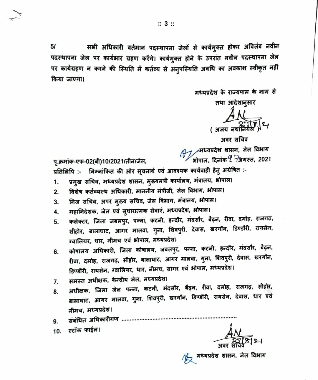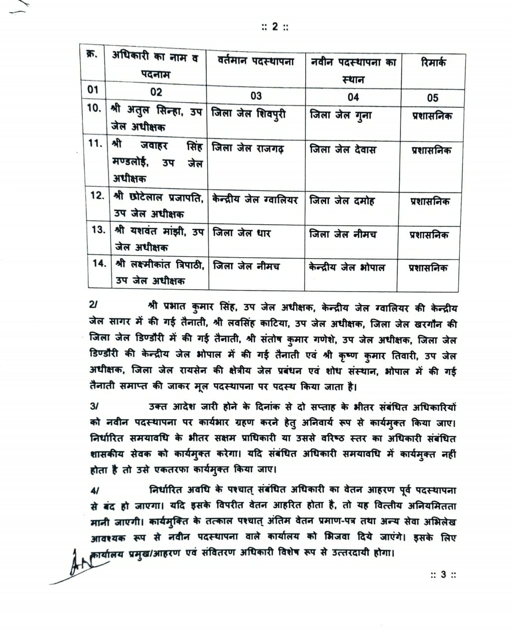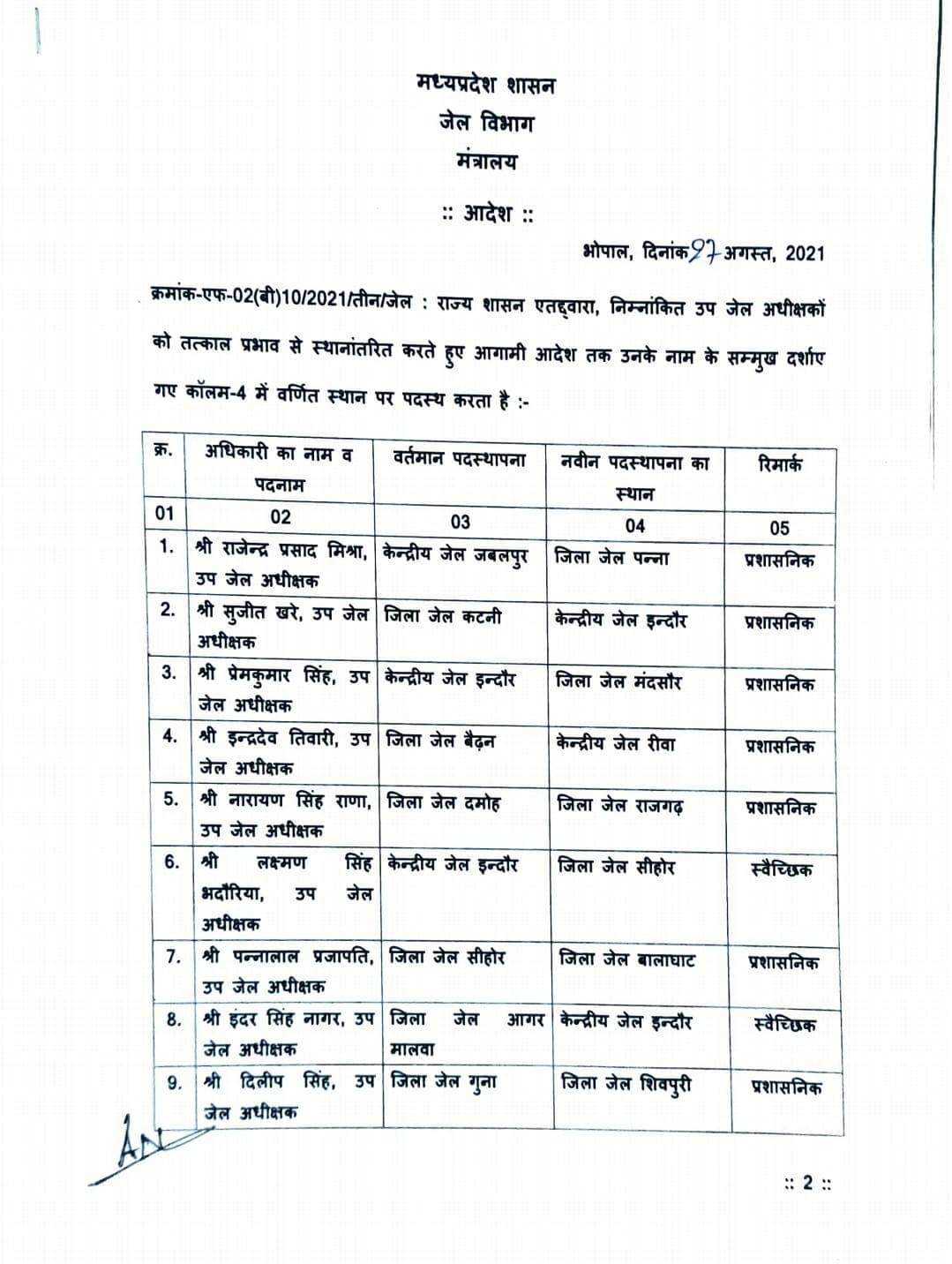 भोपाल, डेस्क रिपोर्ट। जेल विभाग में तबादले हुए हैं। प्रदेश में उप जेल अधीक्षकों को इधर से उधर किया गया है। इसे लेकर जेल विभाग ने आदेश जारी कर दिए हैं। लिस्ट देखिये यहां-