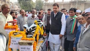 ग्वालियर, अतुल सक्सेना। रसोई गैस और पेट्रोल की बढ़ती कीमतों के खिलाफ कांग्रेस आक्रोशित है और लगातार विरोध प्रदर्शन कर रही है। ग्वालियर में आज बुधवार को ग्वालियर दक्षिण विधानसभा के विधायक प्रवीण पाठक (MLA Praveen Pathak) के नेतृत्व में कांग्रेस ने जन जागरण पदयात्रा (Jan Jagran Padyatra congress) निकाली। पद यात्रा में बाइक और रसोई गैस को ठेले पर रखकर विरोध जताया। कांग्रेस कार्यकर्ता केंद्र सरकार विरोधी नारे लगा रहे थे।