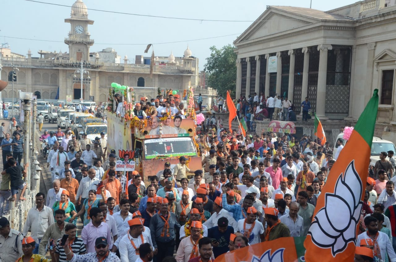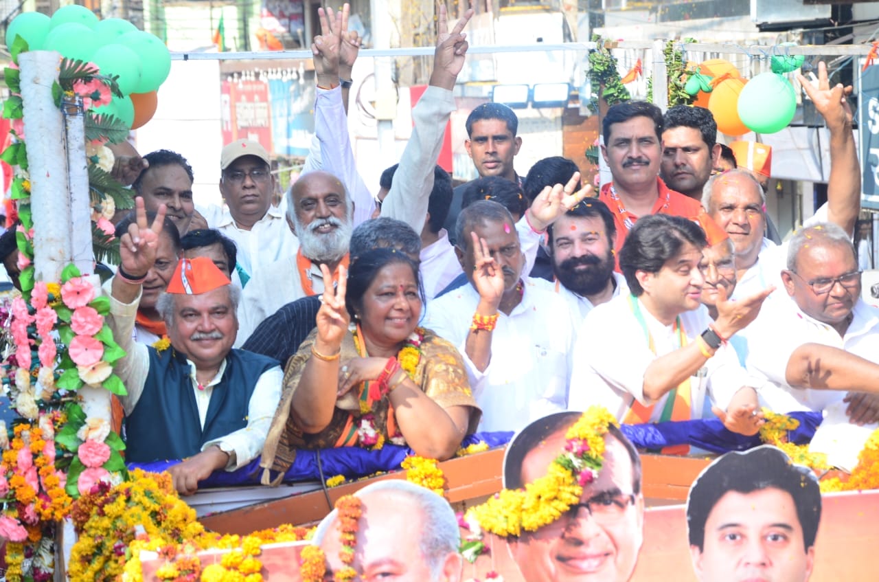 ग्वालियर, अतुल सक्सेना। मप्र नगरीय निकाय चुनाव (MP Urban Body Election 2022) के पहले चरण का शोरगुल थमने से पूर्व भाजपा (BJP) ने अपनी पूरी ताकत झोंक दी। मुख्यमंत्री शिवराज सिंह चौहान जहाँ कल रविवार को देर रात रोड शो करके गए वहीं केंद्रीय मंत्री ज्योतिरादित्य सिंधिया (Jyotiraditya Scindia) और नरेंद्र सिंह तोमर (Narendra Singh Tomar) ने भी पिछले दो दिनों में लगातार बैठकें और रोड शो किये। चुनाव प्रचार थमने से पहले भाजपा (Gwalior BJP) के सभी बड़े नेताओं ने महापौर प्रत्याशी सुमन शर्मा को साथ लेकर पूरे शहर में रोड शो किया और पार्षद प्रत्याशियों के लिए वोट मांगे।