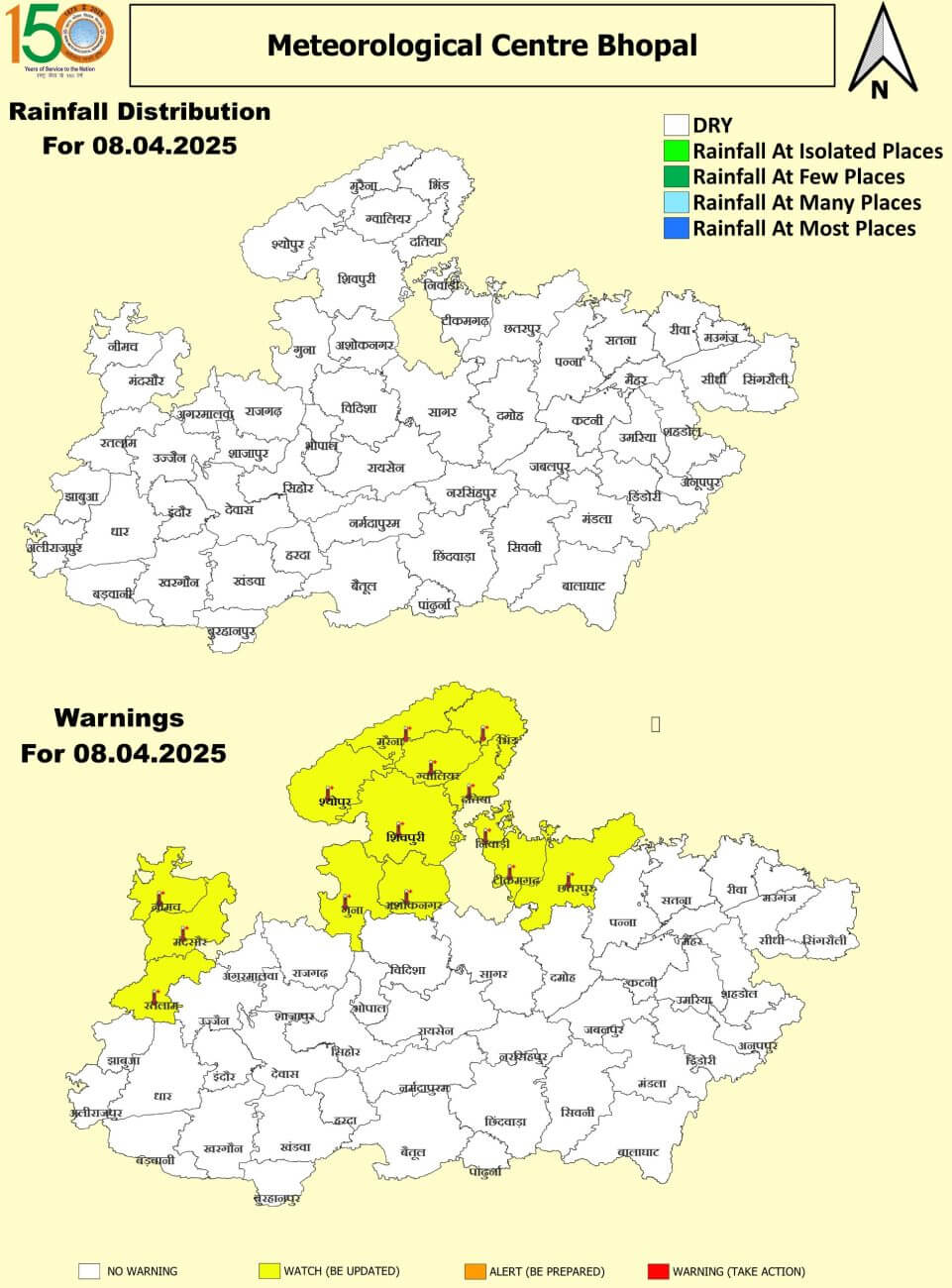 - आज 7 अप्रैल को सोमवार को नीमच, मंदसौर, भिंड, मुरैना, श्योपुर, रतलाम और मंगलवार को ग्वालियर, चंबल, रतलाम, राजगढ़
