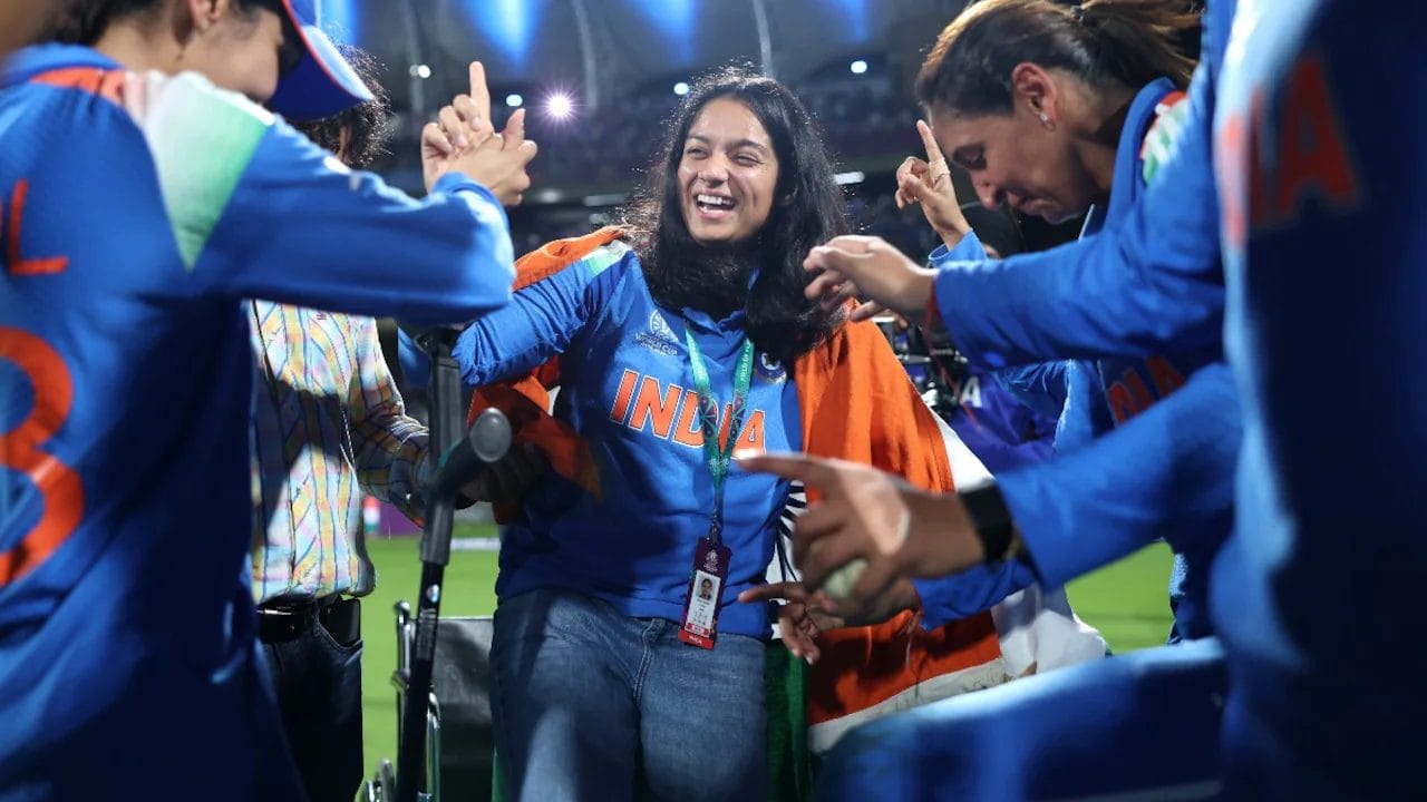 टीम इंडियाने अंतिम सामन्यात दक्षिण आफ्रिकेचा ५२ धावांनी पराभव करून पहिल्यांदाच विजेतेपद पटकावले. दुखापतीमुळे प्रतीका रावल वर्ल्ड कप स्पर्धेतून बाहेर पडली असली तरी, विजयादरम्यान टीम इंडिया तिच्या सहकाऱ्याला विसरली नाही. वर्ल्ड कप फायनल दरम्यान, प्रतीका रावल संघासोबत बसलेली दिसली. टीम इंडियाने वर्ल्ड कप ट्रॉफी जिंकली तेव्हा प्रतीका देखील संघाच्या सेलिब्रेशनसाठी उपस्थित होती. प्रतीकाने तिच्या सहकाऱ्यांसोबत व्हीलचेअरवरून उभी राहून भांगडाही सादर केला.