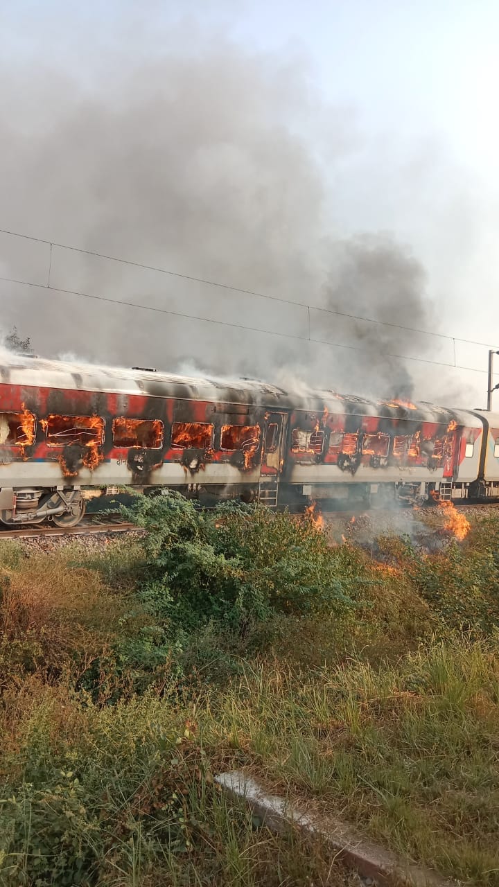 दो जनरल बोगी आग की चपेट में, इमरजेंसी ब्रेक लगा रोकी ट्रेन
