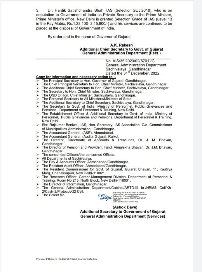 बीएच टालाती, डीजी प्रजापति, डीडी कपाड़िया, धर्मेंद्र अरविंद भाई साह, केएन शाह और केएल बचानी को सिलेक्शन ग्रेड का लाभ दिया गया है।