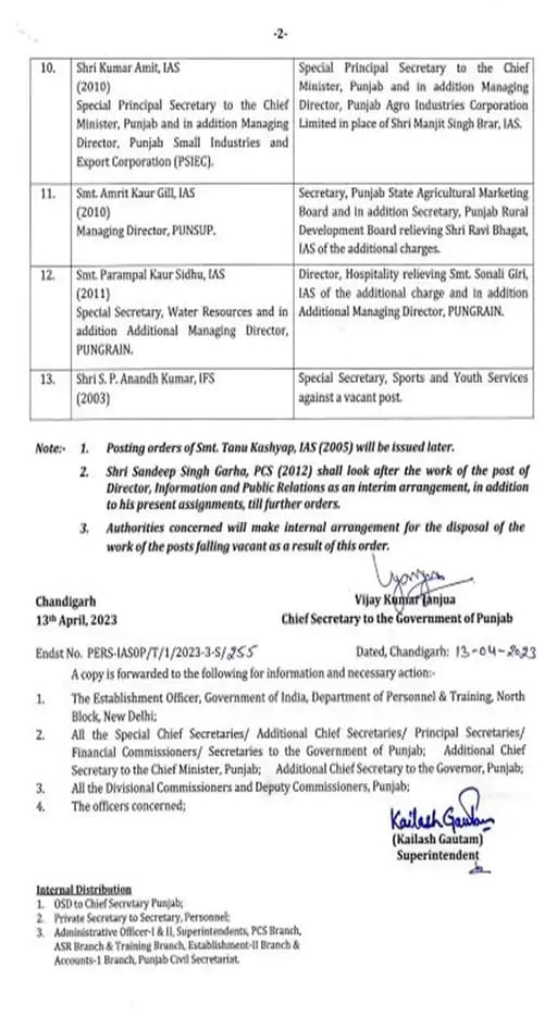 - जबकि कुमार अमित को विशेष प्रमुख सचिव, मुख्यमंत्री के साथ पंजाब एग्रो का भी एमडी नियुक्त किया गया है।