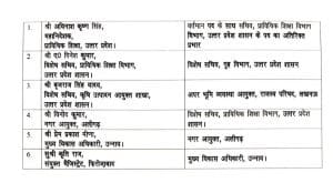 ए. दिनेश कुमार, विशेष सचिव, प्राविधिक शिक्षा विभाग, यूपी को विशेष सचिव, गृह विभाग पद पर नियुक्त किया गया है। बृजराज सिंह यादव को अपर भूमि व्यवस्था आयुक्त, राजस्व परिषद, लखनऊ पद पर भेजा गया है। इससे पहले विशेष सचिव, कृषि उत्पादन आयुक्त शाखा, यूपी पद की जिम्मेदारी संभाल रहे थे।