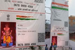 जमशेदपुर में बने इस पंडाल में भगवान गणेश के फोटो के साथ उनका आधार कार्ड नंबर लिखा हुआ है। इसी के साथ कार्ड पर गणेश जी के पिता का नाम महादेव और पता कैलाश पर्वत के टॉप फ्लोर पर मानसरोवर झील के पास दिया गया है।