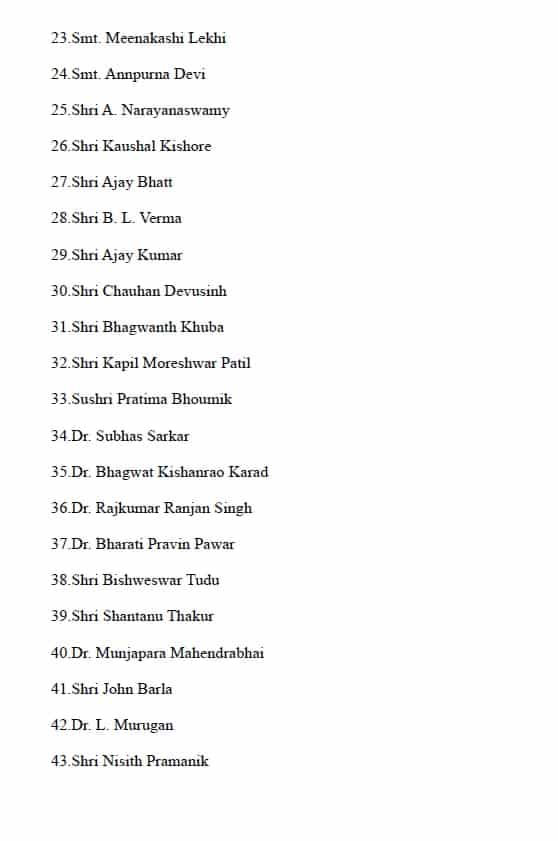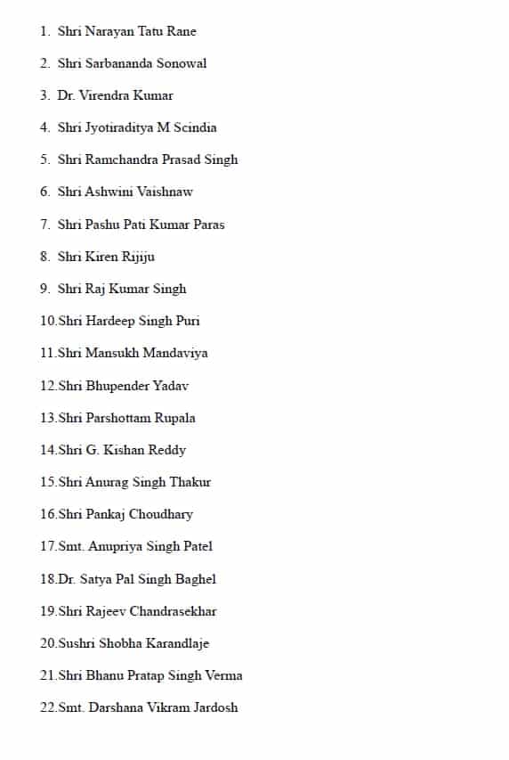 कैबिनेट विस्तार से पहले केंद्रीय शिक्षा मंत्री रमेश पोखरियाल निशंक (Ramesh Pokhriyal Nishank), संतोष गंगवार, केंद्रीय स्वास्थ्य मंत्री डॉ हर्षवर्धन, स्वास्थ्य राज्य मंत्री अश्विनी चौबे, महिला बाल विकास मंत्री देवश्री चौधरी, उर्वरक एवं रसायन मंत्री सदानंद गौड़ा, श्रम राज्य मंत्री संतोष गंगवार, शिक्षा राज्यमंत्री संजय धोत्रे, बाबुल सुप्रीमो, प्रताप सारंगी और रतन लाल कटारिया ने मंत्री पद से इस्तीफा दे दिया है।