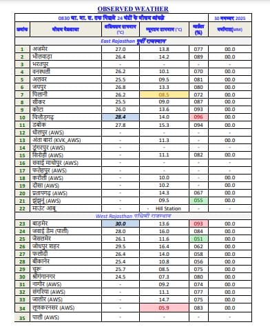 - वर्तमान में जयपुर, जोधपुर, बीकानेर और उदयपुर जैसे प्रमुख शहरों में न्यूनतम तापमान 10 से 12 डिग्री सेल्सियस के बीच बना हुआ है।