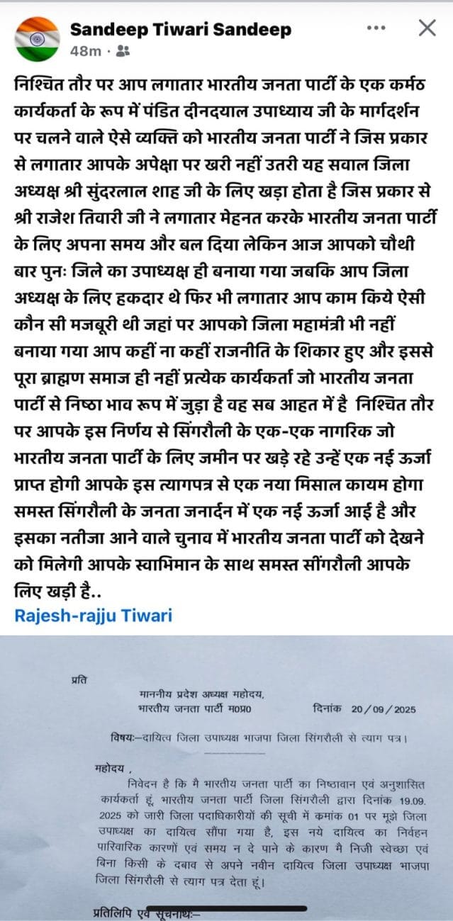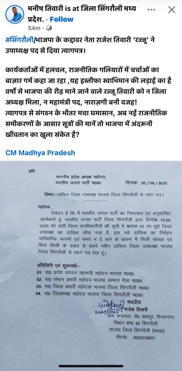 राजेश तिवारी रज्जू ने दिया इस्तीफा बताया ये कारण