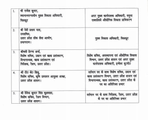 UP IAS Transfer : उत्तर प्रदेश की ब्यूरोक्रेसी में एक बार फिर फेरबदल किया गया है। राज्य की योगी आदित्यनाथ सरकार ने शनिवार देर रात पांच आईएएस अधिकारियों के तबादले कर उन्हें नई जिम्मेदारियां सौंपी हैं।इसमें दो अधिकारियों को अतिरिक्त प्रभार भी दिया गया है।इसके अलावा चार पीसीएस अधिकारियों का भी ट्रांसफर किया गया है।इससे पहले आईएएस अधिकारी अखंड प्रताप को विशेष सचिव निर्वाचन विभाग व उप मुख्य निर्वाचन अधिकारी उत्तर प्रदेश बनाया था और दीपा रंजन को उत्तर प्रदेश राज्य ग्रामीण सड़क विकास प्राधिकरण लखनऊ का अतिरिक्त प्रभार की जिम्मेदरी सौंपी थी।