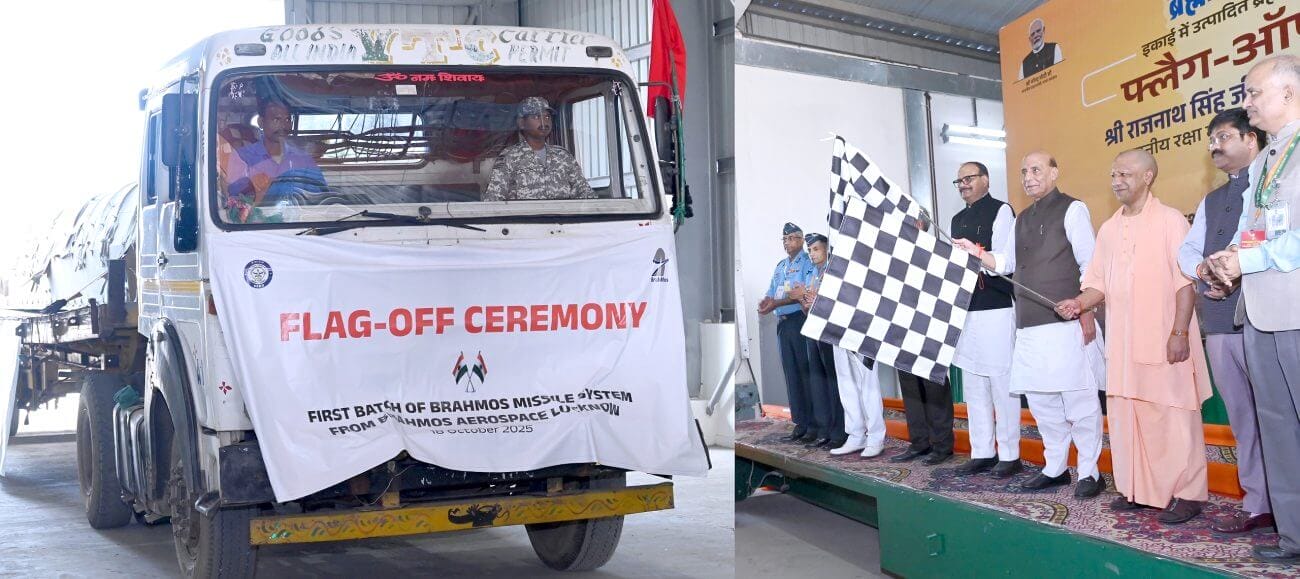 उत्तर प्रदेश के मुख्यमंत्री योगी आदित्यनाथ आज रक्षा मंत्री राजनाथ सिंह के साथ ब्रह्मोस एयरोस्पेस लखनऊ इकाई में बनी ब्रह्मोस मिसाइलों के प्रथम बैच के फ्लैग-ऑफ समारोह में शामिल हुए। योगी ने कहा लखनऊ में बनी हुई मिसाइल, देश वासियों को उनकी सुरक्षा, समृद्धि को संरक्षित करने की और खुशहाली के प्रति एक आश्वस्ति है। वहीं रक्षा मंत्री राजनाथ सिंह ने कहा लखनऊ से निकलने वाला हर कदम भारत की सुरक्षा और आत्मनिर्भरता की ओर बढ़ता हुआ एक प्रभावी कदम है।
