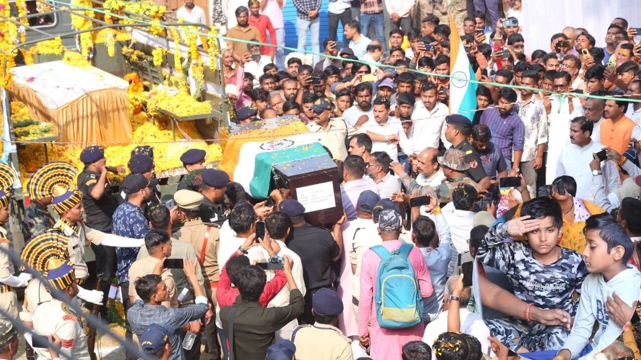Agar Malwa News : जम्मू-कश्मीर के राजौरी में सड़क हादसे में मध्य प्रदेश के वीर सपूत 63 राष्ट्रीय राइफल्स बटालियन के नायक बद्रीलाल यादव का सैन्य सम्मान के साथ अंतिम संस्कार किया गया। आगर मालवा के पैतृक गांव नरहल में शहीद के दोनों पुत्रों ने पार्थिव देह को मुखाग्नि दी।