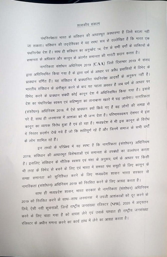-सीएए के विरोध में शासकीय संकल्प पारित।
