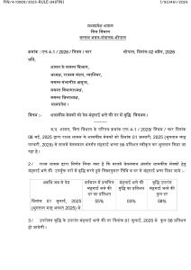 वित्त विभाग ने जारी आदेश में स्पष्ट किया है कि जो कर्मचारी 1 जुलाई 2025 से 31 मार्च 2026 के बीच सेवानिवृत्त हो चुके हैं या जिनका निधन हो गया है, उन्हें अथवा उनके नामांकित सदस्य को एरियर की पूरी राशि एकमुश्त प्रदान की जाएगी। महंगाई भत्ते की गणना में 50 पैसे या उससे अधिक राशि को अगले पूर्ण रुपये में जोड़ा जाएगा, जबकि 50 पैसे से कम राशि को छोड़ दिया जाएगा। साथ ही यह भी स्पष्ट किया गया है कि महंगाई भत्ते का कोई भी हिस्सा किसी अन्य प्रयोजन के लिए वेतन का भाग नहीं माना जाएगा। सभी विभागों को निर्देश दिए हैं कि महंगाई भत्ते के भुगतान पर होने वाला व्यय संबंधित विभाग के स्वीकृत बजट प्रावधान के भीतर ही सुनिश्चित किया जाए।