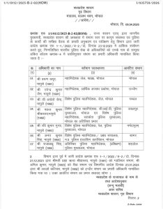 मध्यप्रदेश शासन के गृह विभाग ने कानून-व्यवस्था मजबूत करने और और पुलिस के कार्यों की समीक्षा के लिए सात वरिष्ठ आईपीएस (भारतीय प्रशासनिक सेवा) अधिकारियों को विभिन्न संभागों का प्रभार सौंपा है। इस संबंध में आदेश 8 अप्रैल 2026 को जारी किए गए हैं। इसमें भोपाल, उज्जैन, चंबल जबलपुर, नर्मदापुरम, सागर और शहडोल संभाग के लिए वरिष्ठ आईपीएस अधिकारियों को प्रभार सौंपा गया है।