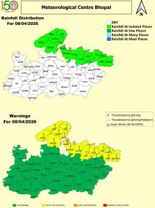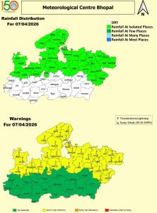 मौसम विज्ञान केन्द्र, भोपाल की दैनिक रिपोर्ट के मुताबिक, वर्तमान में अलग-अलग स्थानों पर पश्चिमी विक्षोभ, ट्रफ और चक्रवातीय परिसंचरण सक्रिय है। मध्य एवं पूर्वी भारत के ऊपर माध्य समुद्र तल से 12.6 किमी की ऊंचाई पर लगभग 204 किमी/घंटा की गति से पश्चिमी जेट स्ट्रीम हवाएं बह रही हैं। एक नया पश्चिमी विक्षोभ 7 अप्रैल 2026 से उत्तर-पश्चिम भारत को प्रभावित करने की संभावना है, जिसके असर से 8 से 10 अप्रैल तक मौसम में बदलाव देखने को मिलेगा।