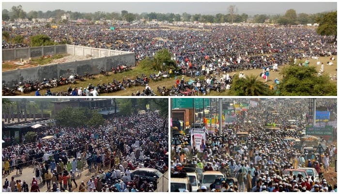 -दुआ से फारिग होने के बाद इज्तिमागाह से हर तरफ जाने वाले हर रास्ते पर नजर पहुंचने के दायरे तक टोपियां ही टोपियां दिखाई दे रही थीं।