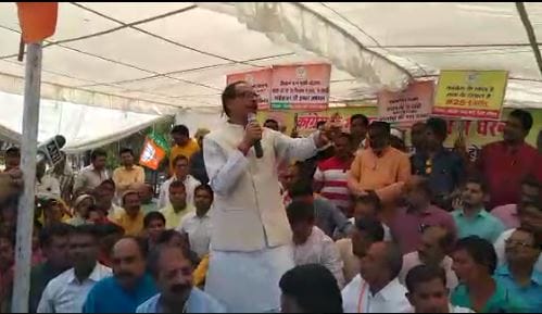 इस मौके पर शिवराज ने प्रदेश की कमलनाथ सरकार और कांग्रेस पार्टी के अध्यक्ष राहुल गांधी पर जमकर हमला बोला। शिवराज ने कहा कि कांग्रेस की कमलनाथ सरकार ने जो जो वादे किए थे 100 दिन बीत जाने के बाद भी पूरा नहीं किया। किसानों का कर्जा 10 दिन के अंदर माफ करने की बात की गई थी जिसे अभी तक पूरा नहीं किया जा सका।शिवराज ने कहा कि किसानों का कर्ज 48 हजार करोड़ , बजट का प्रावधान 5 हजार करोड़ और बैंको को दिए 1300 करोड़ पैसा ना धैला और भोजपुर का मैला।