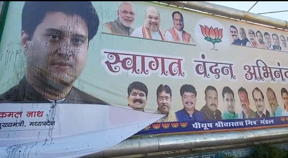 पूर्व निर्धातक कार्यक्रम अनुसार सिंधिया गुरुवार को मध्य प्रदेश के दो दिवसीय दौरे पर आ रहे हैं। 13 तारीख को वो राज्यसभा के लिए नामांकन भरेंगे। बीजेपी ने भोपाल में सिंधिया के स्वागत में कई जगह बैनर-पोस्टर लगाए गए हैं। लेकिन गुस्साए कांग्रेसियों ने उनके पोस्टर पर कालिख पोत दी है। हालांकि इन पोस्टरों में कई और भी बीजेपी नेताओं की तस्वीर लगी है, लेकिन उनमें से किसी को कुछ नहीं किया गया सिर्फ सिंधिया के चेहरे पर ही कालिख फेंकी गई है।