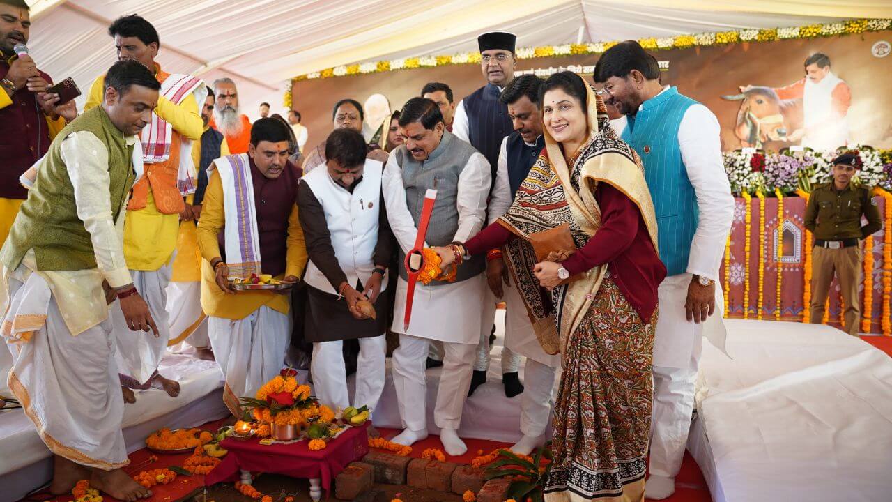 मुख्यमंत्री डॉ. मोहन यादव ने भोपाल जिले के ग्राम बरखेड़ी-डोब में 10 हजार गायों की क्षमता वाली हाईटेक गौशाला का भूमि-पूजन किया।