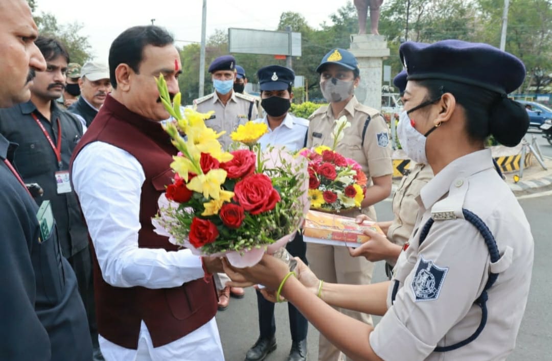गृह मंत्री डॉ नरोत्तम मिश्रा सरकार के फैसले के बाद जब भोपाल की सड़कों पर निकले तो बिट्टन मार्केट चौराहे पर तैनात महिला पुलिस कर्मियों को देख कर रुक गए और उनका पुष्प गुच्छ देकर सम्मान किया।