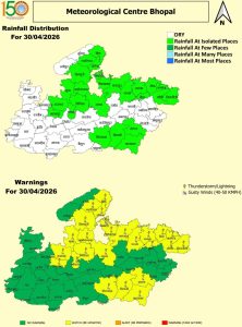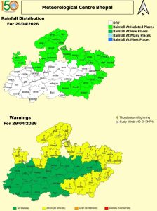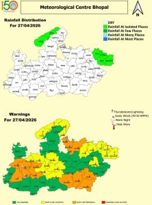 भोपाल मौसम केंद्र के मुताबिक, वर्तमान में चक्रवातीय परिसंचरण सक्रिय है। पश्चिमी विक्षोभ के असर से 27 से 30 अप्रैल के बीच ग्वालियर, चंबल, जबलपुर और सागर संभाग में कहीं-कहीं बादल छाने और गरज-चमक के साथ बारिश की संभावना जताई गई है। मई में तापमान के 45 °C के पार पहुंचने और लू चलने की संभावना जताई गई है। इधर, लगातार बढ़ती गर्मी को देखते हुए प्रदेश के एक दर्जन से ज्यादा जिलों में 30 अप्रैल तक अवकाश घोषित कर दिया गया है। हालांकि ग्रीष्मकालीन अवकाश 1 मई 2026 से शुरू होंगे।