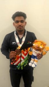 1. वेटलिफ्टिंग:- हिमांशु कुशवाह ने 73 किग्रा. पुरूष वर्ग में स्नैच में 115 कि.ग्रा और क्लीन एण्ड जर्क 140 कि.ग्रा. सहित कुल 255 कि.ग्रा. भार उठाकर कांस्य पदक प्राप्त किया।