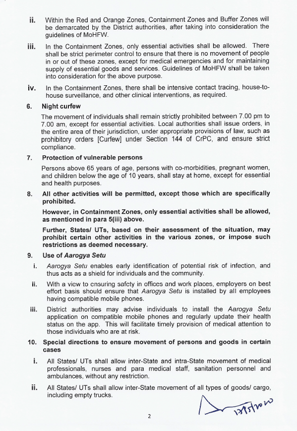 मॉल और कॉम्पलेक्स को खोलने की इजाजत नहीं दी गई है, लेकिन दुकानों को खोलने पर राज्य सरकारें अपने स्तर पर फैसला कर सकती हैं| इंटरस्टेट बस सेवा खुलेंगी, पान गुटका बिकेगा, शर्तों के साथ मिठाई की दुकान खुलेंगी| रेस्त्रा-मिठाई की दुकानें खुलेंगी, लेकिन सिर्फ होम डिलिवरी की अनुमति होगी| शादी समारोह में 50 लोगों के शामिल होने की की इजाजत दी गई है| स्पोर्ट्स कॉम्पलेक्स को बिना दर्शकों के खोलने की अनुमति दी गई है| 65 वर्ष से अधिक उम्र वाले, गंभीर बीमारियों से पीड़ित लोग, गर्भवती महिलाएं और 10 साल से कम उम्र के बच्चे घर में ही रहेंगे|