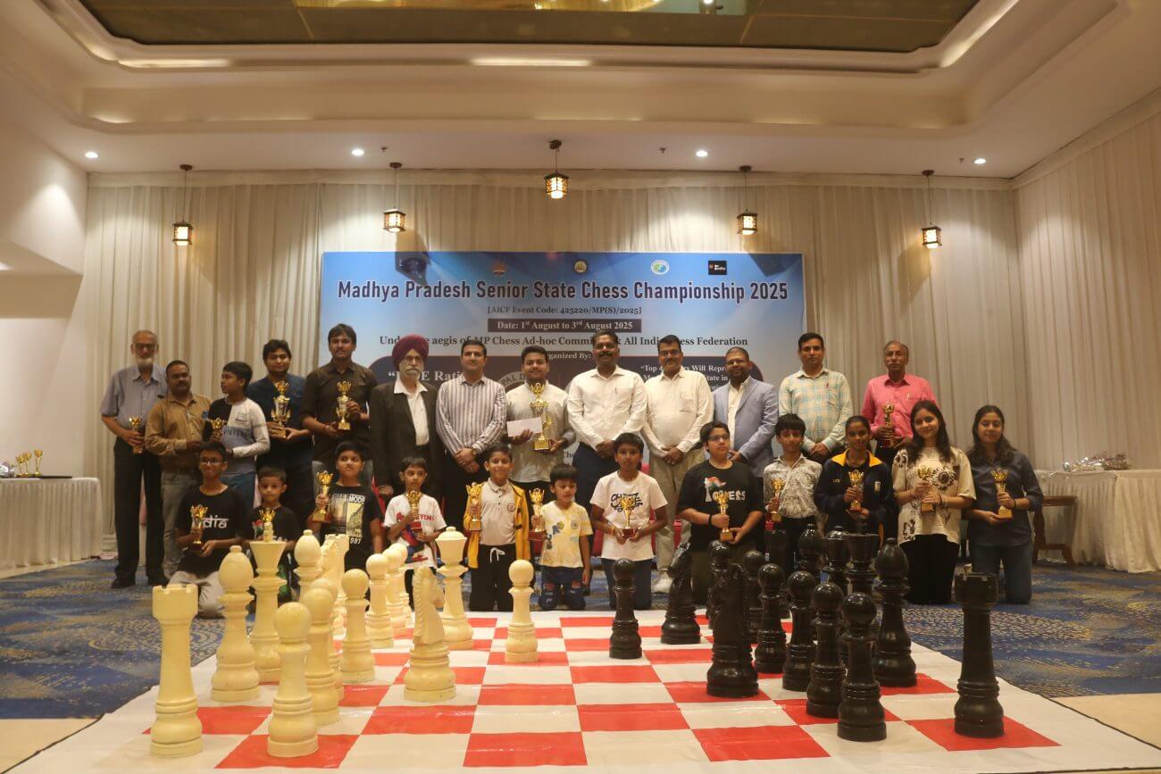 भोपाल में आयोजित मध्यप्रदेश राज्य ओपन शतरंज प्रतियोगिता का अंतिम दिन नाटकीय मुकाबलों और भव्य पुरस्कार वितरण समारोह के साथ संपन्न हुआ। पूरे प्रदेश के 300 से अधिक खिलाड़ियों की भागीदारी से इस प्रतियोगिता ने एक नया कीर्तिमान स्थापित किया।