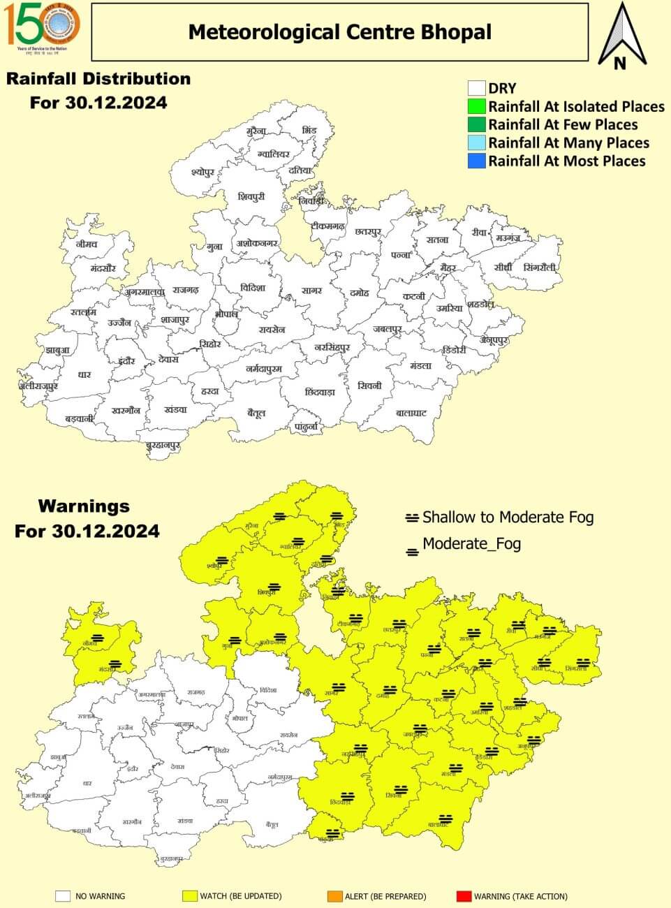 • इंदौर, भिंड, मुरैना, ग्वालियर, नर्मदापुरम, जबलपुर, निवाड़ी, छतरपुर, टीकमगढ़, छिंदवाड़ा और रीवा जिलों में हल्के से मध्यम कोहरा रहा।