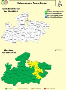 भोपाल मौसम केंद्र के मुताबिक, पश्चिमी विक्षोभ, चक्रवातीय परिसंचरण का प्रभाव बना हुआ है। उत्तर भारत के ऊपर, माध्य समुद्र तल से 12.6 किमी ऊंचाई पर लगभग 148 किमी/घंटा की गति से पश्चिमी जेट स्ट्रीम हवाएं बह रही हैं। एक नया पश्चिमी विक्षोभ 23 अप्रैल 2026 से पश्चिमी हिमालयी क्षेत्र को प्रभावित करने की संभावना है। इसके असर से आने वाले दिनों में कुछ जिलों में तापमान 45 °C तक पहुंचने की संभावना जताई गई है। वहीं हीट वेव का भी असर तेज रहेगा।